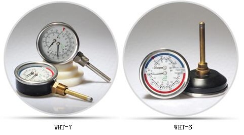 先來說說溫度測量原理。許多溫度壓力一體表采用雙金屬片作為感溫元件。雙金屬片是由兩種熱膨脹系數不同的金屬貼合在一起制成的。當溫度發生變化時,由于兩種金屬的膨脹程度不一樣,雙金屬片就會發生彎曲。比如,在溫度升高時,熱膨脹系數大的金屬膨脹得更多,雙金屬片就會向熱膨脹系數小的金屬那一側彎曲。這種彎曲變形通過一系列的傳動機構,最終轉化為指針在溫度刻度盤上的轉動,我們就能從表盤上讀取到準確的溫度數值了。就像我們常見的體溫計,利用水銀受熱膨脹的原理來顯示體溫,雙金屬片也是通過類似的方式來感知溫度變化的 。