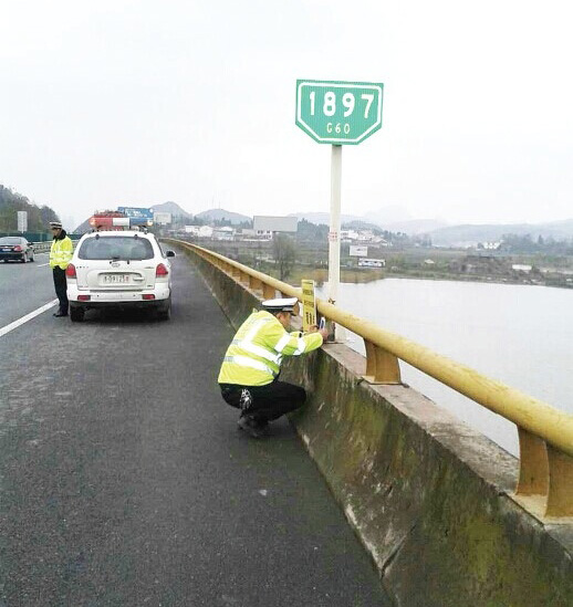據了解,二大隊三中隊的轄區從滬昆高速1889至1913公里。中隊長安弘疆說,以往轄區道路地面溫度一旦降至零下1度左右時,從橋面、坡頂、彎道風口等地點就開始出現凝凍。兩天前,省內出現大幅降溫,為了更好的掌握轄區道路的凝凍情況,二大隊三中隊特地在轄區1897公里轉彎風口處、1900公里橋面、1904公里橋面、1908公里坡頂、1911公里橋面、1909雙向坡段加橋面7個易凝凍點安置了7支溫度計,隨時監控實時路面溫度,一旦溫度降至零下,該中隊與路政、養護就會立即做好抗凝準備。