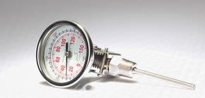 雙金屬溫度計是一種測量中低溫度的現(xiàn)場檢測儀表。可以直接測量各種生產(chǎn)過程中的-80℃-+500℃范圍內(nèi)液體蒸汽和氣體介質(zhì)溫度。主要的元件是一個用兩種或多種金屬片疊壓在一起組成的多層金屬片,利用兩種不同金屬在溫度改變時膨脹程度不同的原理工作的。優(yōu)點是現(xiàn)場顯示溫度,直觀方便;安全可靠,使用壽命長;品種齊全,適應于各種現(xiàn)場安裝的需要。