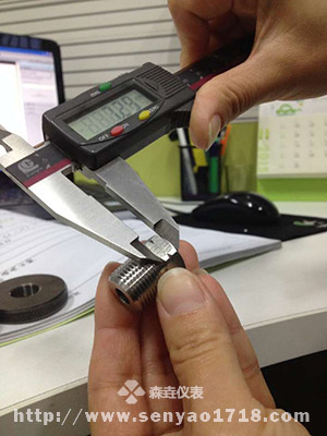 4.根據圖紙的參數,用卡尺測量螺紋的孔徑。