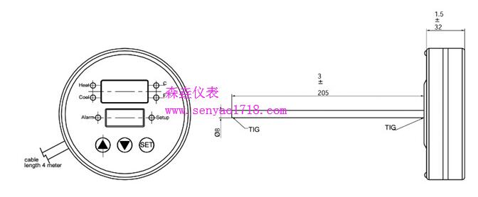 測(cè)溫桿長(zhǎng):200mm, 直徑:8mm
