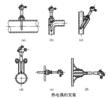 熱電偶安裝時應放置在盡可能靠近所要測的溫度控制點。為防止熱量沿熱電偶傳走或防止保護管影響被測溫度,熱電偶應浸入所測流體之中,深度至少為直徑的10倍。當測量固體溫度時,熱電偶應當頂著該材料或與該材料緊密接觸。為了使導熱誤差減至最小,應減小接點附近的溫度梯度。