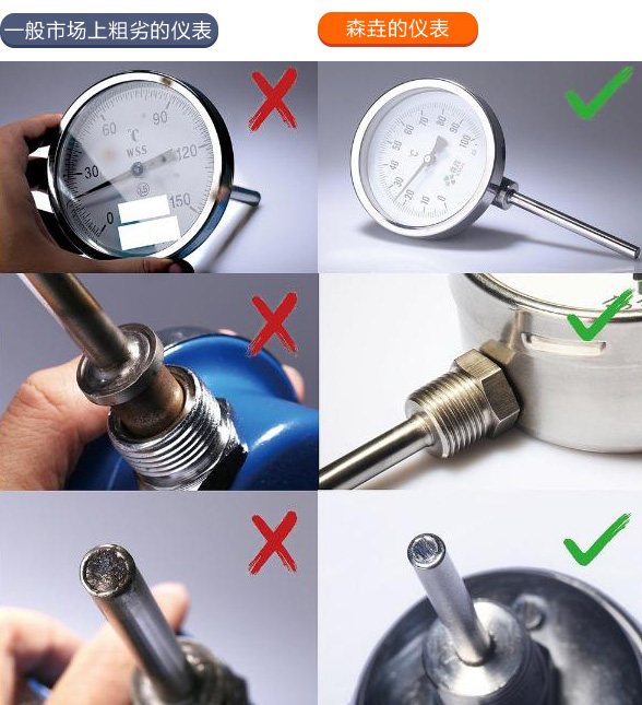 下面來對照一下雙金屬溫度計的質量,希望在選擇是可以給您帶來幫助!