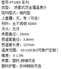 探針式溫度計(jì)雙金屬溫度計(jì)的一種,雙金屬溫度計(jì)是一種測(cè)量中低溫度的現(xiàn)場(chǎng)檢測(cè)儀表。雙金屬溫度計(jì)可以直接測(cè)量各種生產(chǎn)過(guò)程中的-80℃~+500℃范圍內(nèi)液體、蒸汽和氣體介質(zhì)溫度。