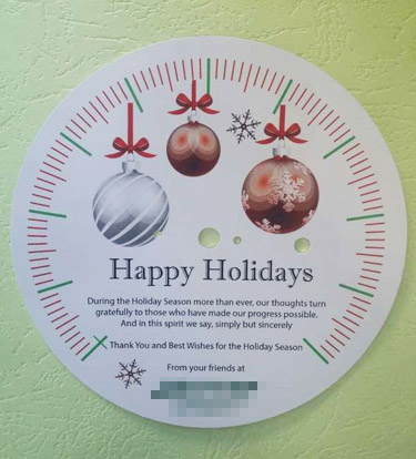 近日,不斷地收到國外客戶寄來的新年賀卡,以下面這張表牌上印字的新年賀卡最具創意!
