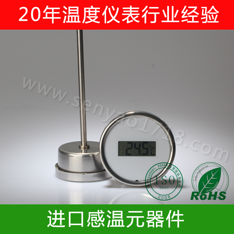 ⑤數顯溫度計采用進口芯片組裝精度高、高穩定性,誤差≤0.5%, 內電源、微功耗、不銹鋼外殼,防護堅固,美觀精致。
