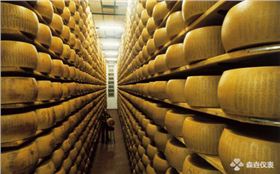 上圖為:帕爾瑪奶酪成品,像鼓一樣,有45公斤重