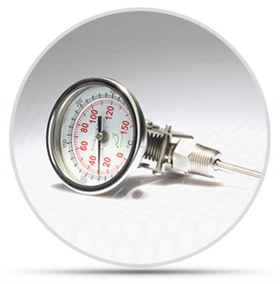 雙金屬溫度計是一種測量中低溫度的現場檢測儀表。可以直接測量各種生產過程中的-50℃-+500℃范圍內液體蒸汽和氣體介質溫度。雙金屬溫度計是用繞成螺紋旋形的熱雙金屬片作感溫元件,并將它裝在保護套內,一端固定(固定端),另一端(自由端)連接在一根細軸上,軸端裝有指針。當溫度發生變化時,感溫元件的自由端隨即轉動,從而細軸帶動指針產生角位移,在標度盤上指示出溫度的變化由于感溫元件與溫度變化呈線性關系,所以雙金屬溫度計指針所指示的位置即是被測溫度值。