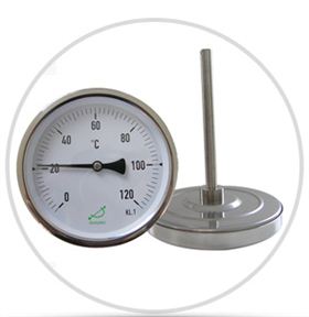 根據這一工作原理和安裝環境的需要,可以制作徑向雙金屬溫度計、軸向雙金屬溫度計和萬向型雙金屬溫度計。使用時,需要將感溫管插入被測介質中。那么合適的插入有多深呢?一般的說法是把整個感溫管插入,這也是對的,但是從專業溫度計廠家的角度來看,感溫管要插入三分之二到被測液體中。為什么這么說呢?因為感溫底部內部是感溫元件,只有將所有感溫元件全部浸入到被測介質中,才能測量出準確的溫度。