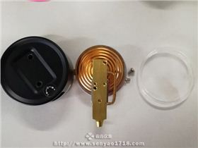 微壓表又稱膜盒壓力表,它不同于壓力表的地方就在于壓力表的測試系統是巴管,而微壓表用的測試系統是波紋膜盒,所以它的別名叫做膜盒壓力表,膜盒壓力表的工作原理是基于波紋膜盒在被測介質的壓力作用下,其自由端產生相應的彈性變形,再經齒輪傳動機構的傳動并予放大,由固定于齒輪軸上的指針逐將被測值在度盤上指示出來。還有調零裝置,可以方便調整零位。今天來看看拆解后的膜盒壓力表是什么樣子的吧。